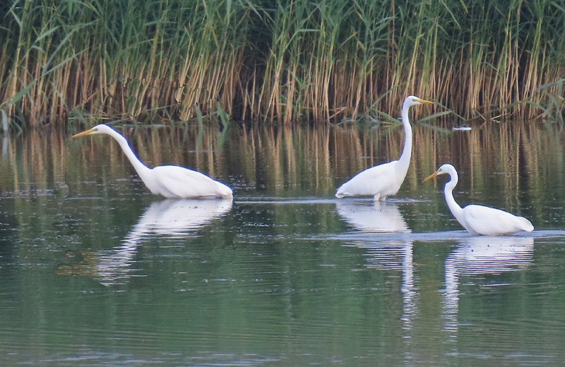 This morning there were five Great White Egrets on the Slurry Lagoon. Later three flew off, but two then returned mid-morning. A Common Sandpiper was on a tern raft in the Deep Pit and a Hobby snatched a Reed Bunting and carried it away. PS.