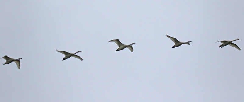 This morning three female Common Scoters were on the Deep Pit, seven Whooper Swans flew through to the north as well as seven Great White Egrets, three of which spent some time on the Slurry Lagoon. A Fieldfare was eating berries in the Causeway bushes behind the benches and seventy Redwings flew in from the north, turned around and flew back again. The two Pintail were still feeding on the Slurry Lagoon. PS. JV.