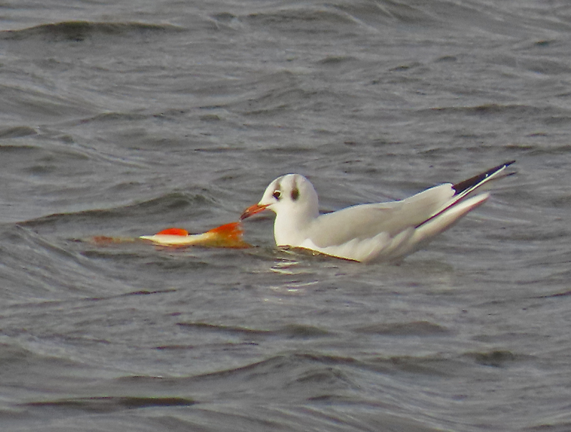 The Marsh Harrier left the roost quite early this morning, setting off to hunt further down the Trent Valley. There were no ducks on the Slurry Lagoon other than fifteen Shoveler and nine Teal. There were plenty of Black-headed, Common and Herring Gulls and one Lesser Black-backed Gull. A Carrion Crow noticed a dead Perch floating in the water and nearly landed on the water, but thought better of it. Eventually some Black-headed Gulls showed an interest but seemed afraid of the fish. Only one bird plucked up the courage to investigate it. PS.