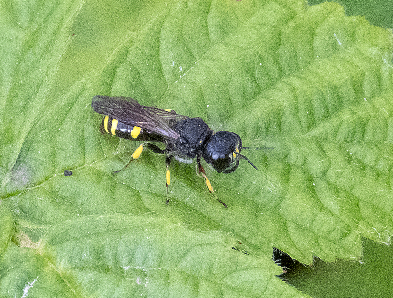 Body length 8 - 35mm. A black wasp with three abdominal yellow bands.