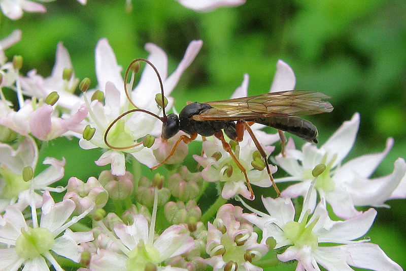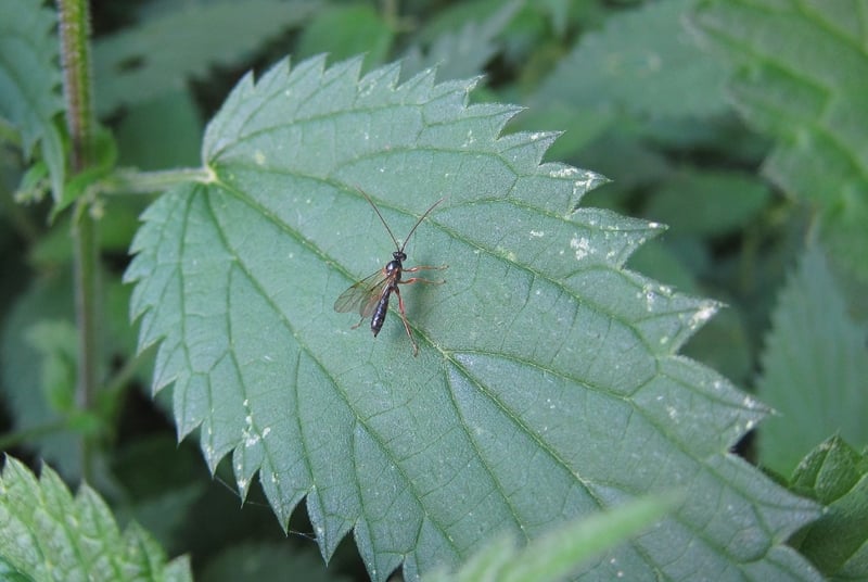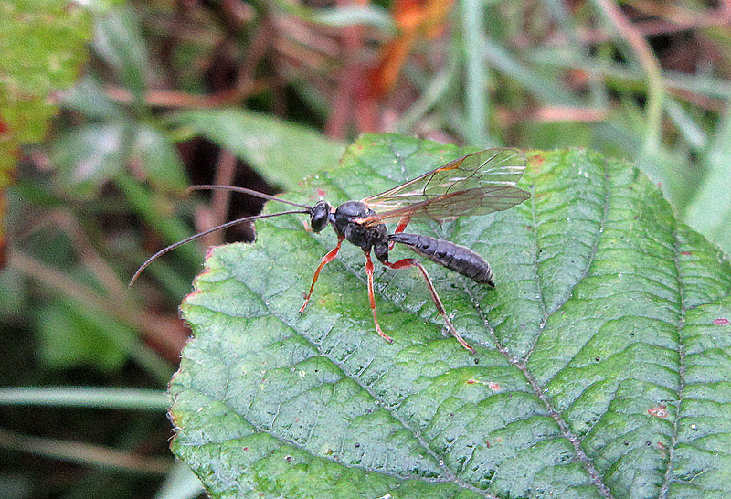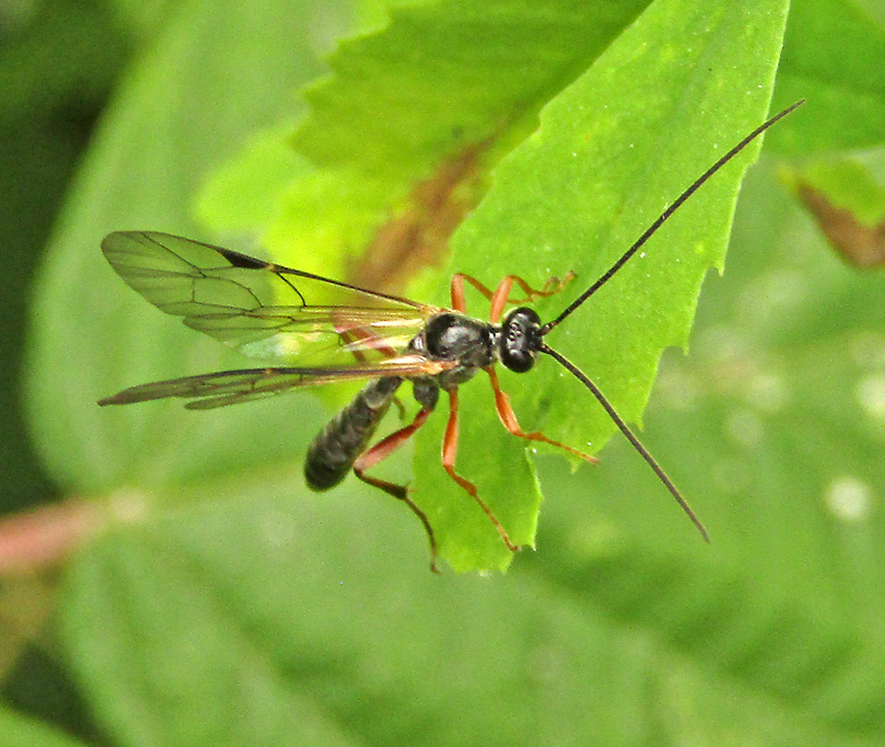 Body length 8 - 9mm. A small black species with orange legs and a black stigma. This is probably the species in the photograph but it is not recommended to use photographs for identification.