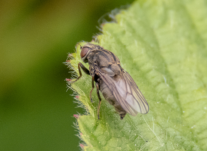 Over all length 7mm. A heavy set, furry, brown fly with short antennae which are red at the base.