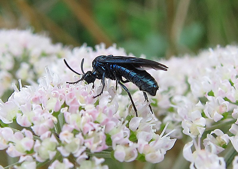 Body length 9 - 10mm. This species is completely metallic blue/black with the wings tinted dark.